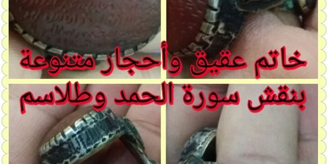 خاتم عقيق قديم مروحن مطلسم منقوش عليه سورة الحمد نافع للكثير من الأمور كالرزق والتيسير وغيرها-موقع خدمات روحانية 0096181370575
